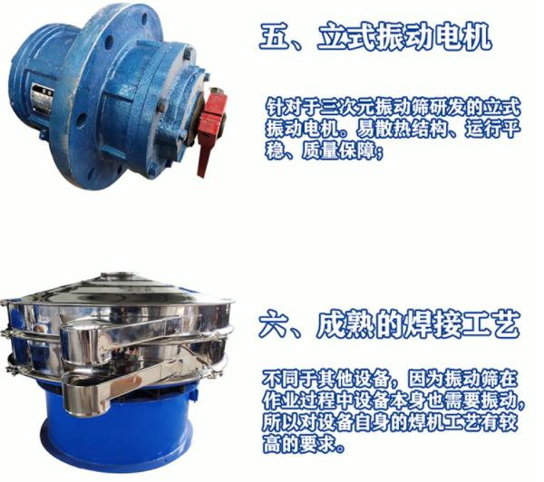 三次元振動(dòng)篩及旋振篩,是一種高精度細(xì)粉篩分機(jī)械,其噪音低、效率高,快速換網(wǎng)需3-5分鐘,全封閉結(jié)構(gòu),適用于粒、粉、粘液等物料的篩分過濾。我公司擁有成熟的生產(chǎn)鏈,自主研發(fā)高品質(zhì)振動(dòng)篩設(shè)備。歡迎您來洽談、合作。